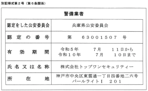 | 認定番号 | 兵庫県公安委員会 第63001507号 |